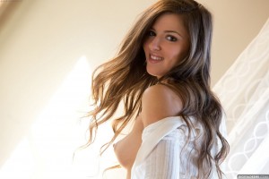 Coco Rose stripping off lingerie and lays on her back naked. See more of her at Digital Desire