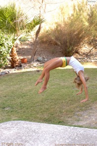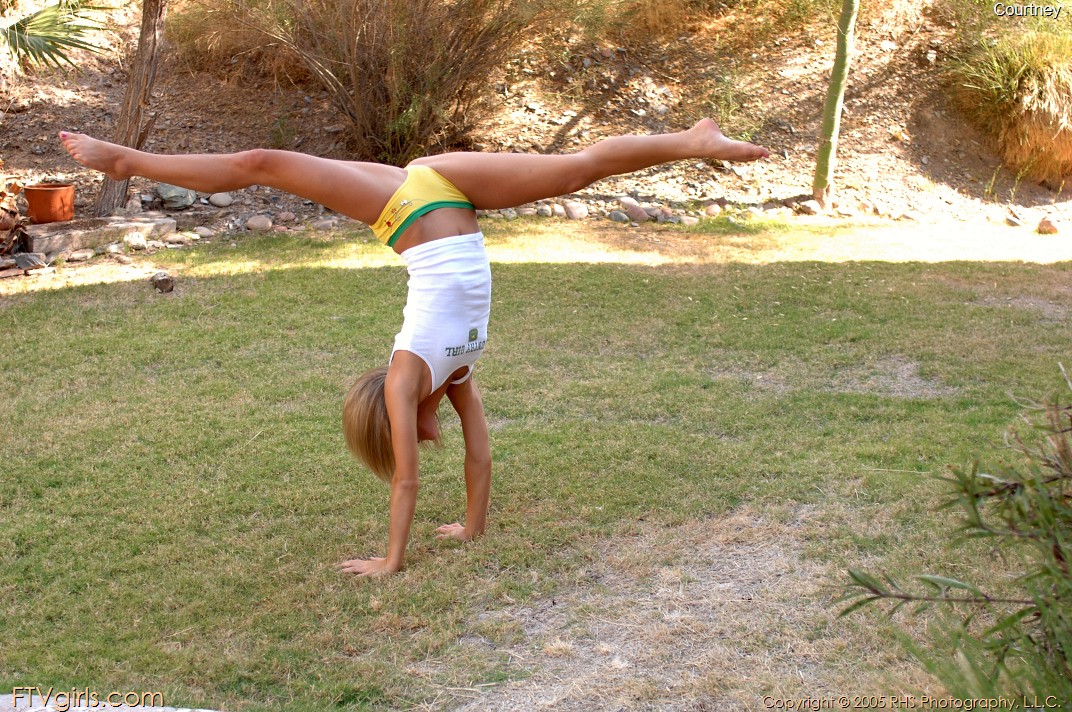 Courtney Simpson wears cute panties and a t-shirt and does tumbling in the backyard 🙂 See more of Courtney Simpson at First Time Videos.Â