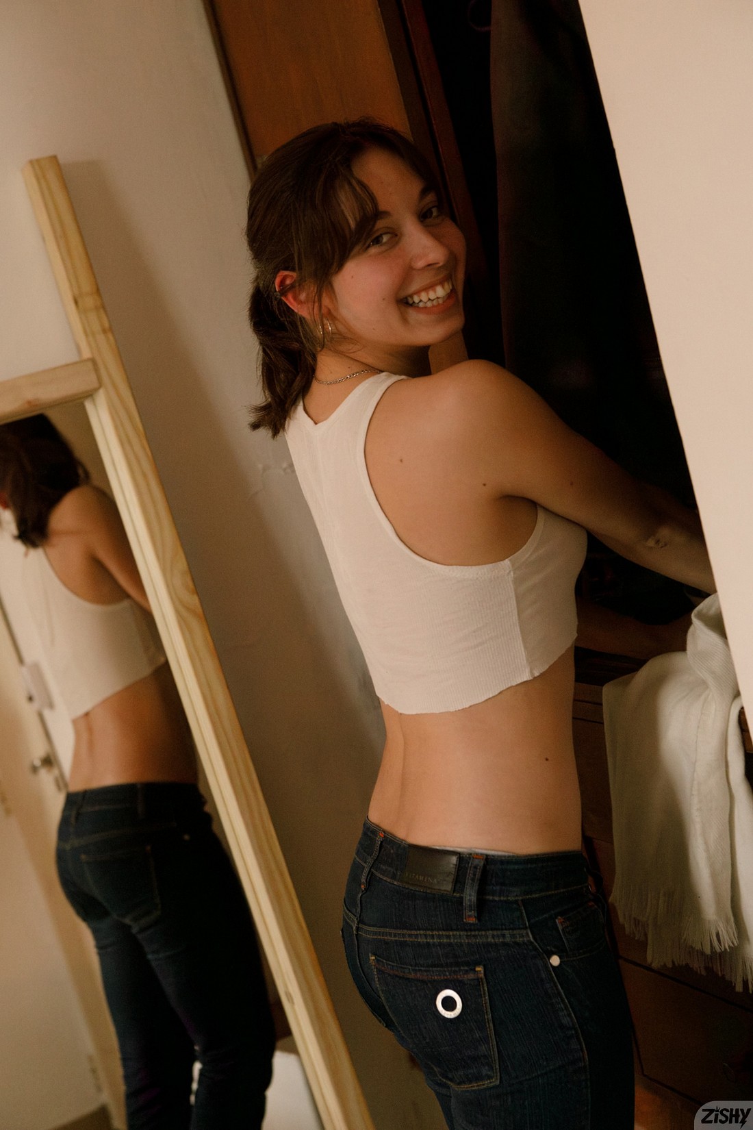 New amateur model (2025) Geral Santos strikes erotic poses in her room, including with the help of the curtains. More of her at Zishy