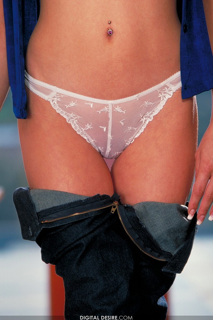 Jamie Lynn strips and shows her sheer white lace panties and her sheer bra. See all pictures of Jamie Lynn at Digital Desire.