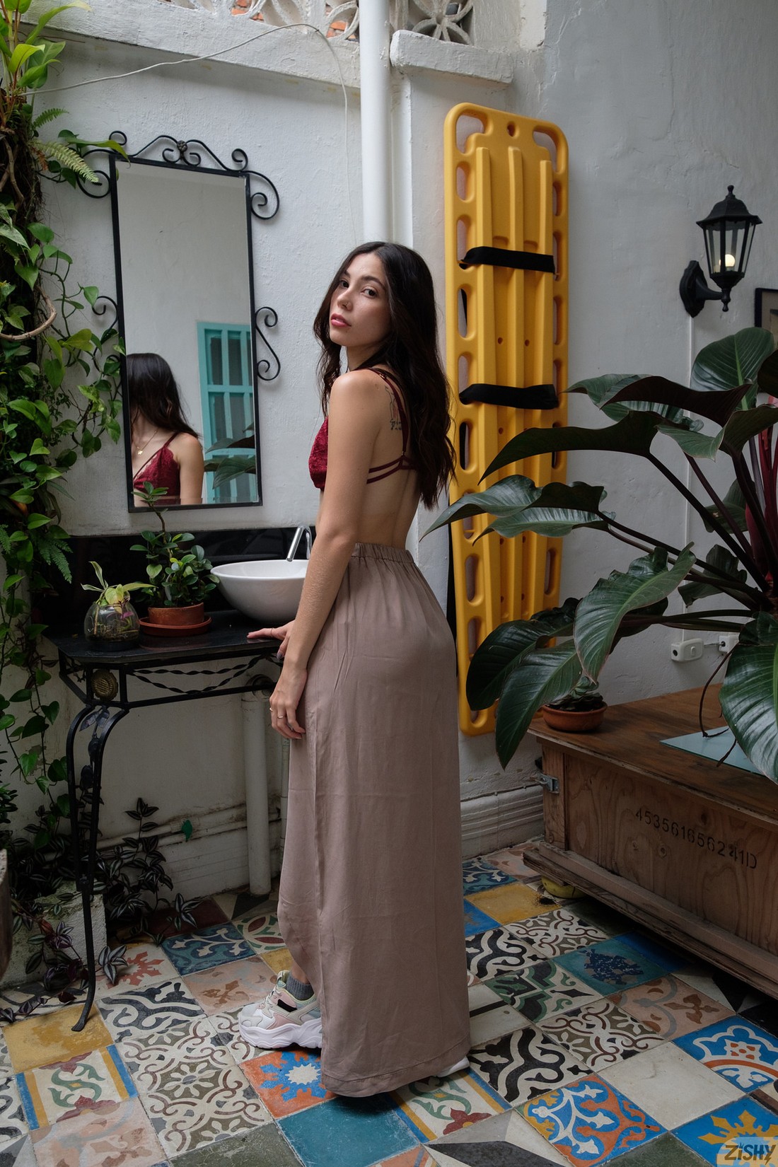 Latina with long hair Juliana (aka Julia Campos at Zishy) baring her amazing butt at home.