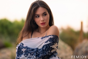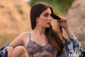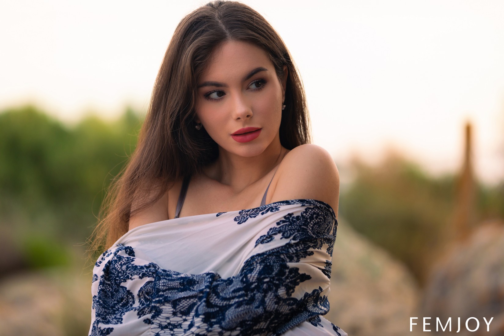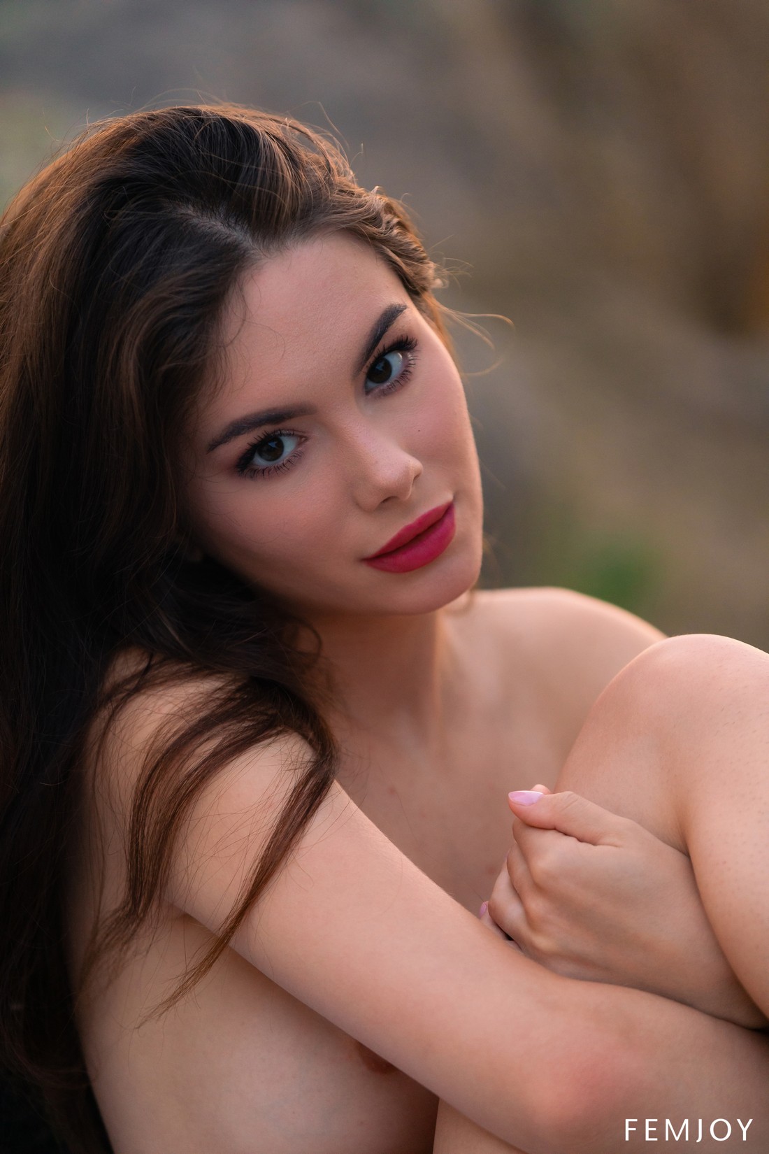Slim starlet Liz Ocean lifting her dress and posing naked on a bench. See more at Femjoy