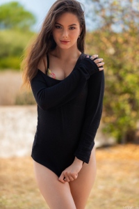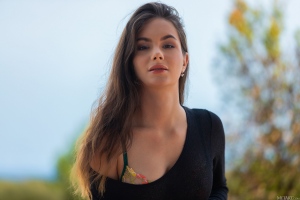 Liz Ocean getting nude in nature, and a warm floral breeze gently caresses her body. See more at Met Art