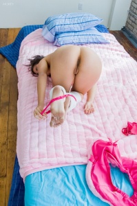 Sexy Mai Ly undressing and teasing on bed in doggy style. See more pics of Mai at Morey Studio.