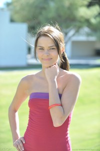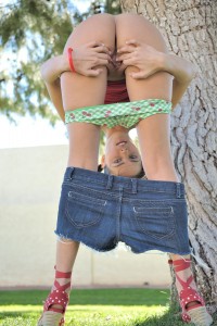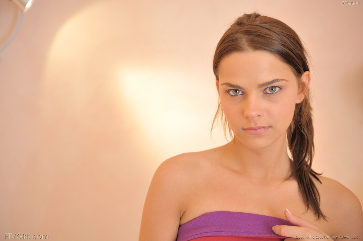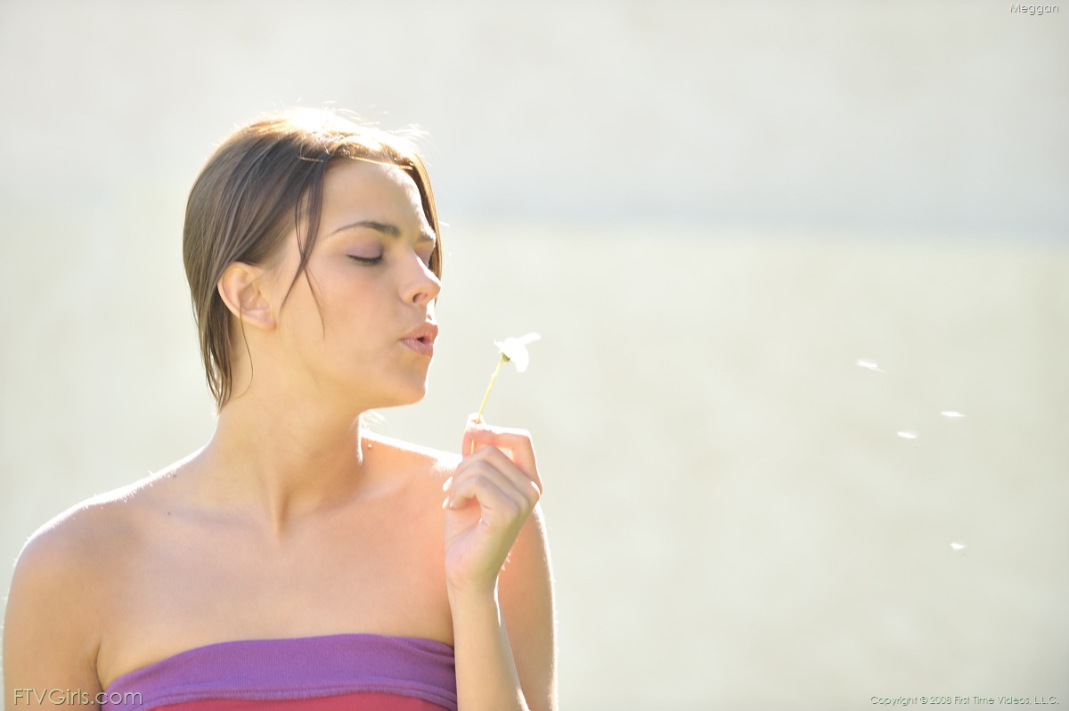 Slim girl Meggan Powers taking off her jean shorts and dildoing her pussy. See more of her (Meggan) at FTV Girls