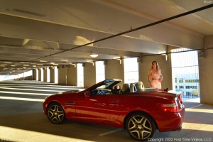 River Lynn poses with red Mercedes SLK cabriolet and flashes her tits and pussy. See more at FTV Girls.