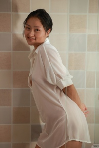 Sang Wei in white underwear spreading her legs on the bed. See more at Zishy