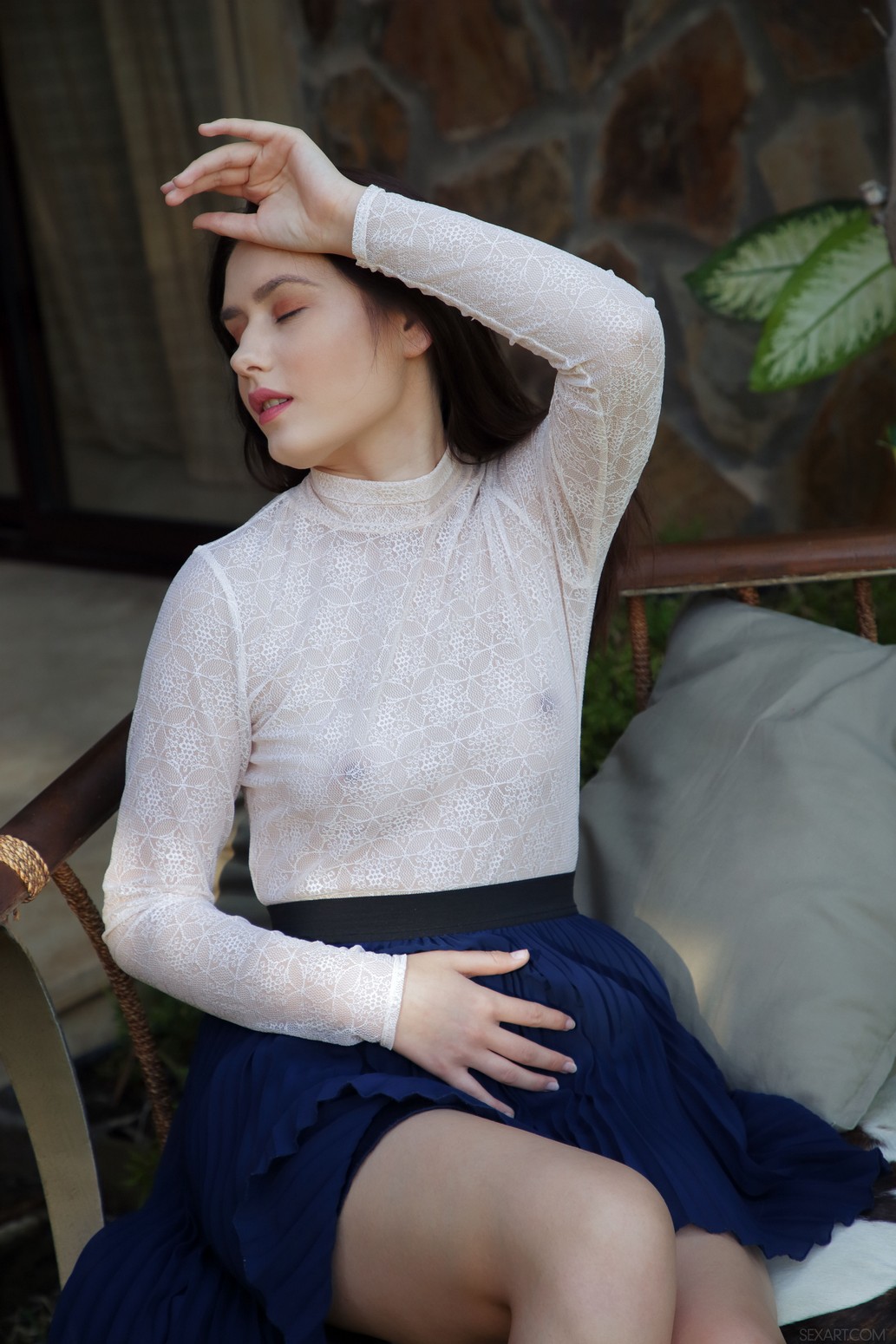 Sexy pale skin brunette Sanija spreading her legs and touching her pink pussy. Find much more of her at Sex Art. AKA Kacy Lane.