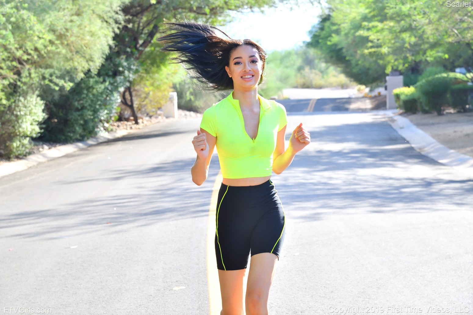 Scarlett Bloom taking off her athletic outfit, posing nude and dildoing herself. See more of her at FTV Girls