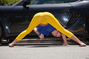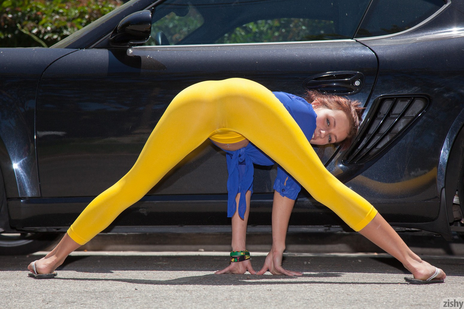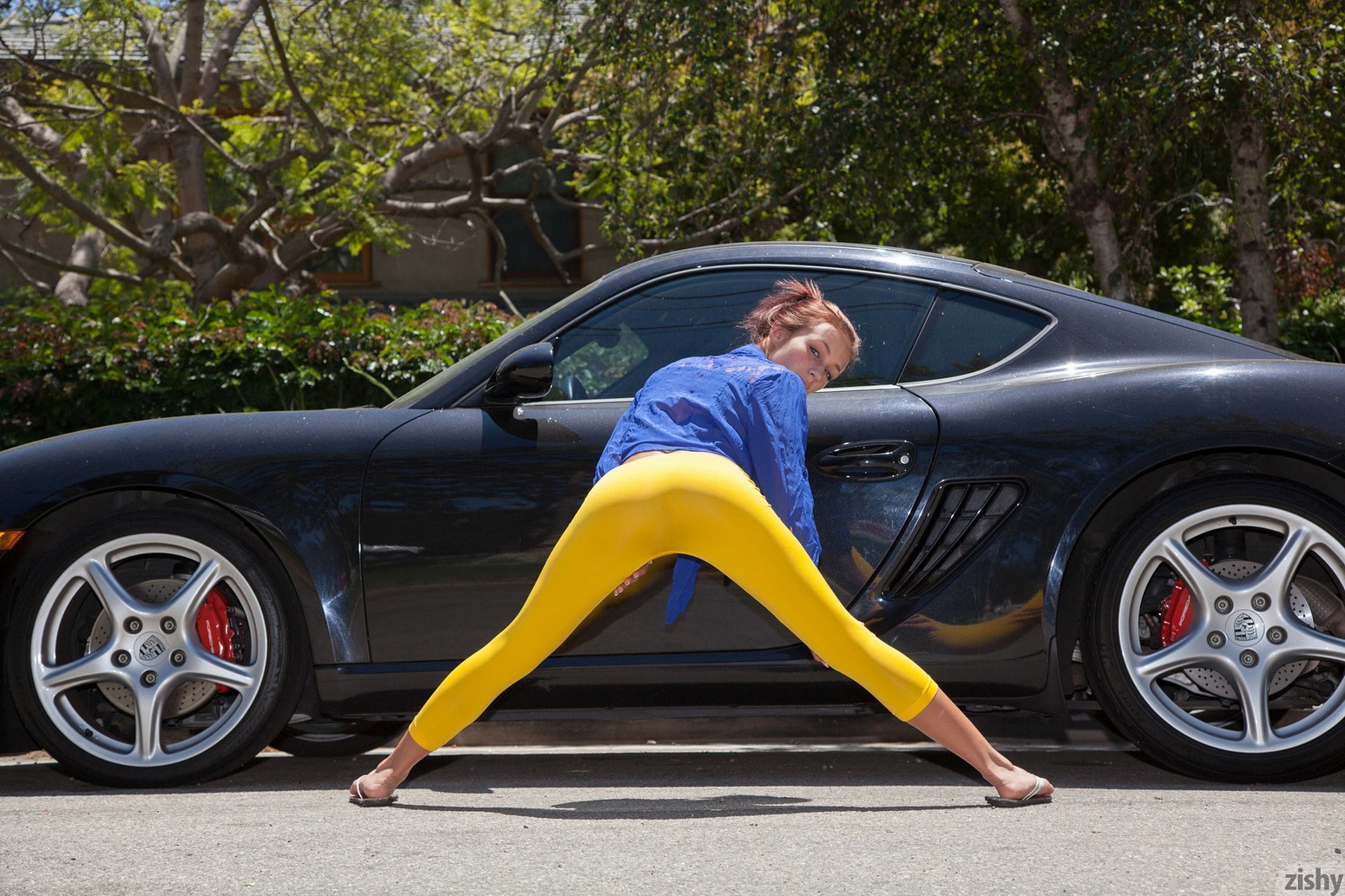 Victoria Lynn in yellow tights getting excited by Porsche. See more of Victoria at Zishy